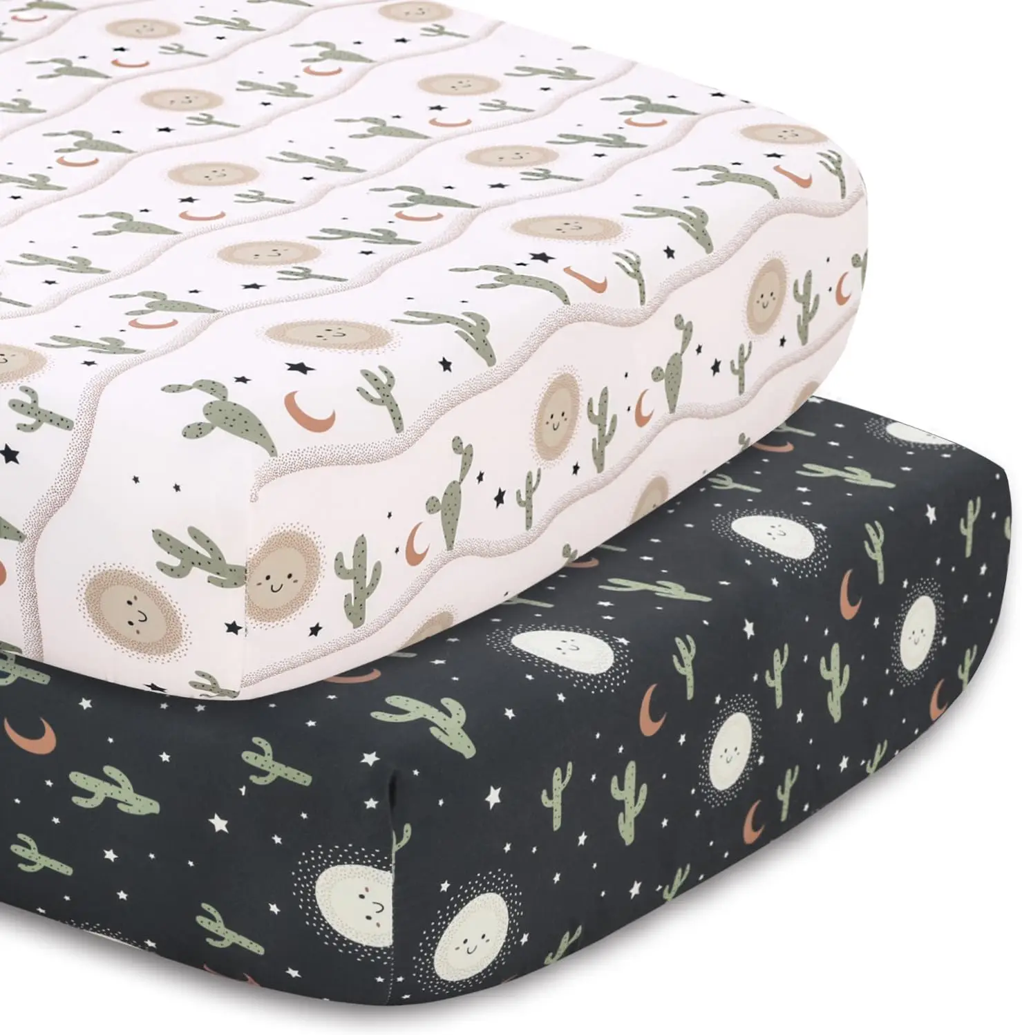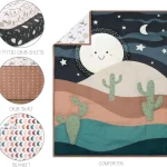 - Desert Print Design: A delightful desert landscape print, with cacti and mountains in soft, earthy tones that add a calm, natural vibe to the nursery.