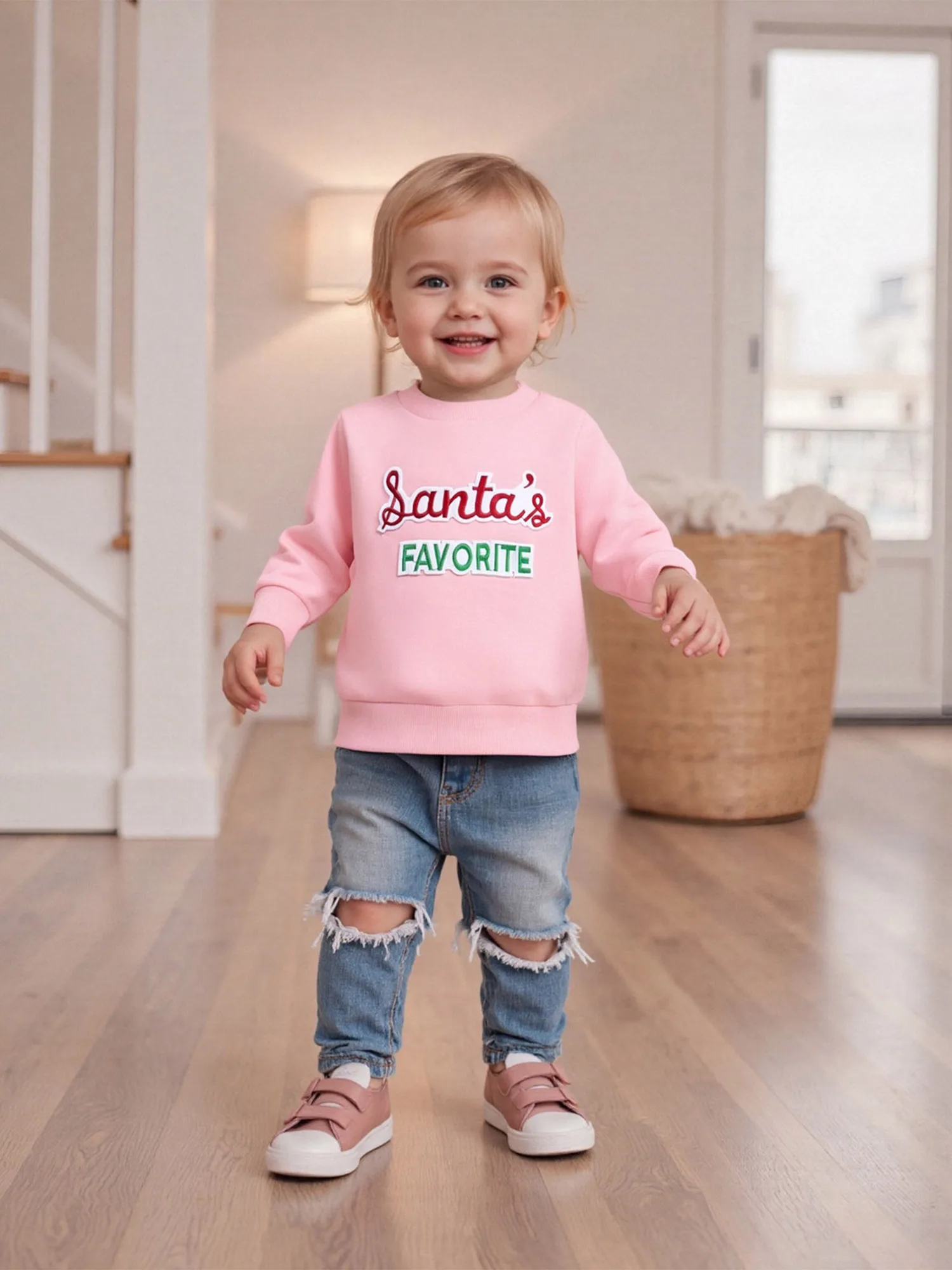 Keep your little one cozy and stylish this holiday season with this festive Christmas sweatshirt! Featuring delicate embroidered lettering, this casual crew neck pullover is designed with long sleeves and a classic fit that’s perfect for everyday wear. Made from soft polyester, it offers lightweight comfort and durability for all-day play and holiday fun.
