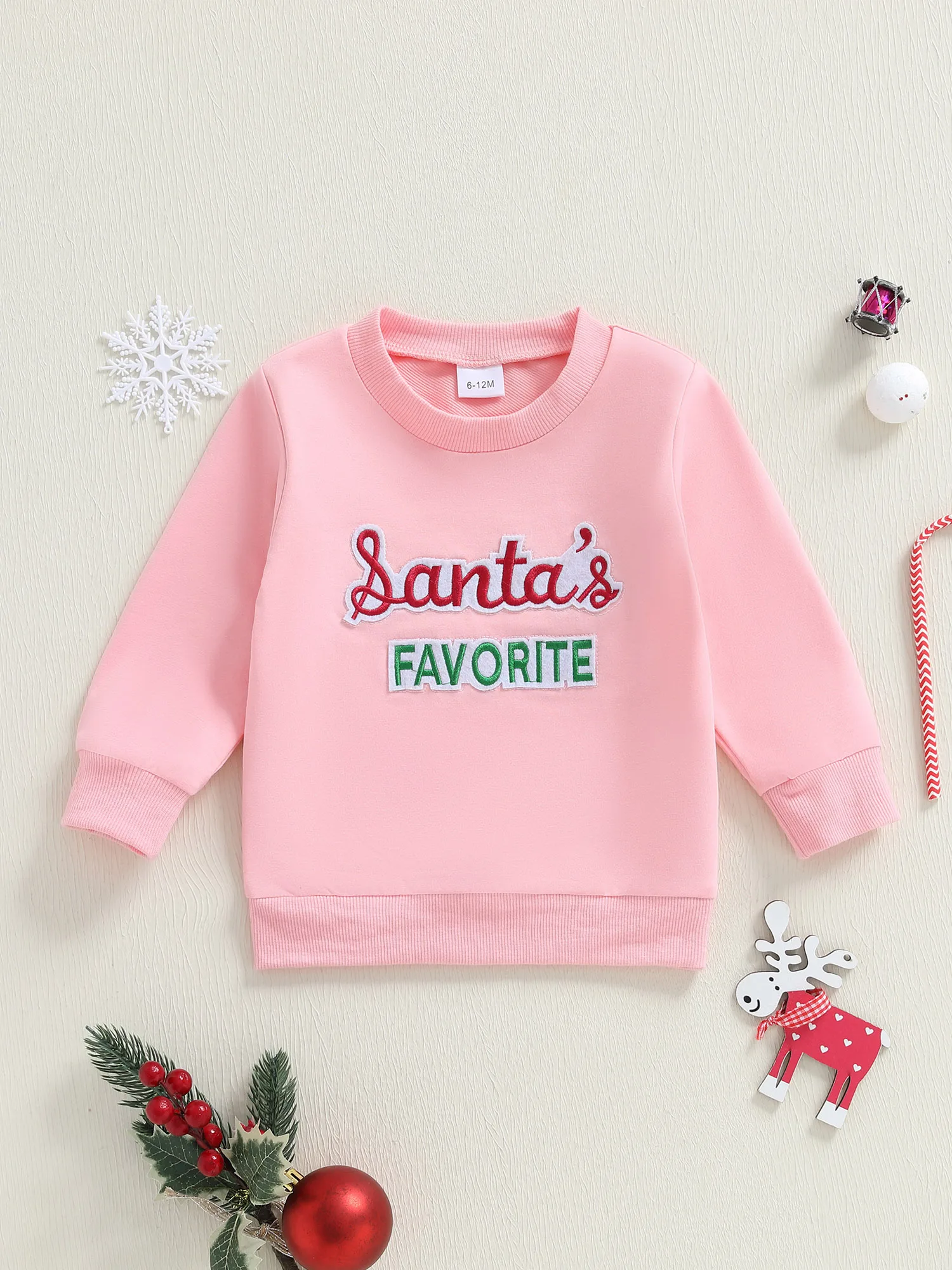 Toddler Girls Christmas Sweatshirt – Embroidered Letter Crew Neck Pullover 🎄✨