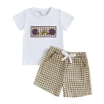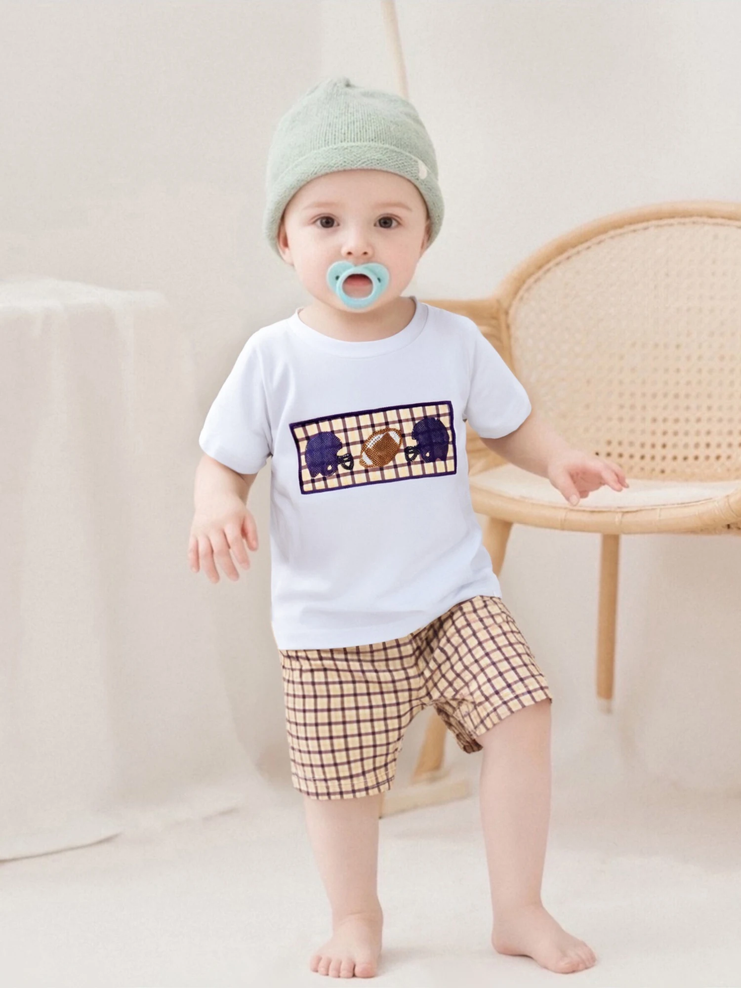 Dress your little boy in casual comfort and playful style with this adorable 2-piece summer outfit. The loose-fit short sleeve T-shirt features charming duck embroidery for a fun touch, paired with classic plaid shorts that offer an easy, breathable fit for warm days.