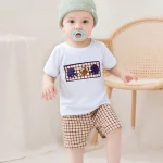 Toddler Baby Boy Summer Outfit – Loose Fit Embroidered Short Sleeve T-Shirt & Plaid Shorts 2-Piece Set