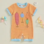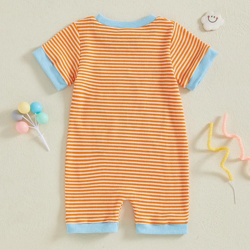 Baby Boys & Girls Graphic Embroidery Romper – Short Sleeve Crewneck Jumpsuit