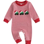 Baby Christmas Embroidered Tractor Striped Long-Sleeve Jumpsuit 🚜🎄