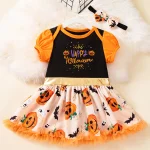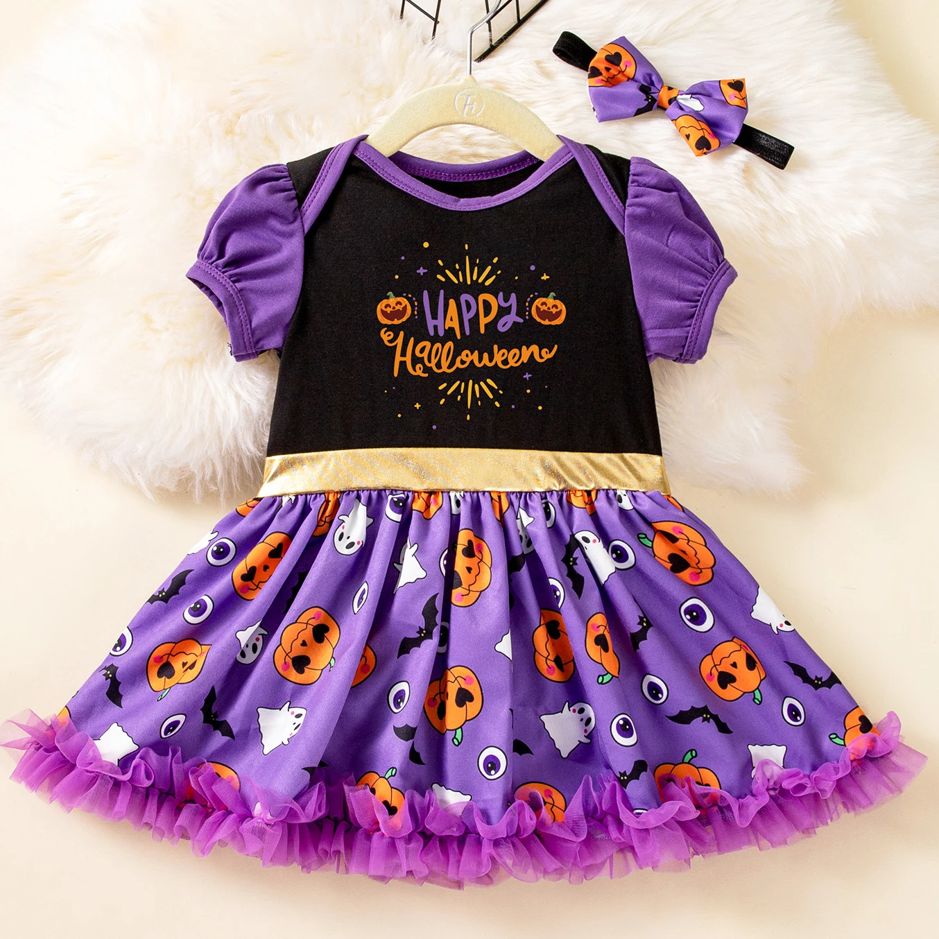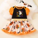 Make Halloween magical with this adorable pumpkin-themed dress for baby girls! Designed with a cute puff-sleeve silhouette, soft cotton-polyester fabric, and festive Halloween details, this dress is perfect for trick-or-treating, family gatherings, or seasonal photos. The matching headband completes the set, creating a charming and comfortable outfit for little pumpkins.