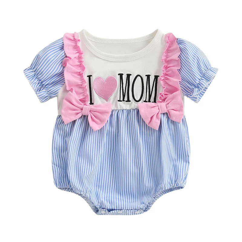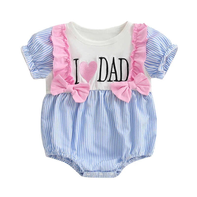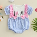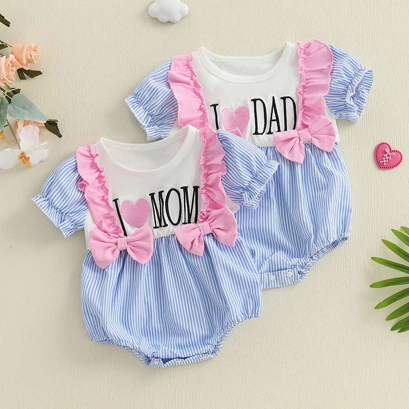 Celebrate baby’s sweetest bond with our Baby Girls Rompers, featuring adorable “I Love Mom” or “I Love Dad” embroidery on soft, breathable fabric. Designed with charming stripes, these rompers offer a classic yet playful look that’s perfect for everyday wear or special moments.