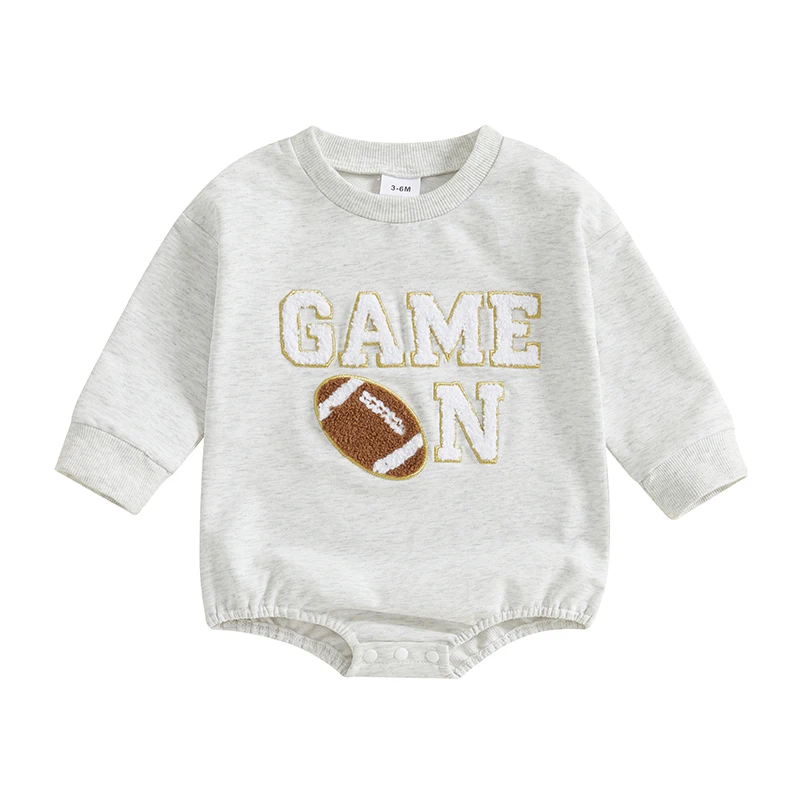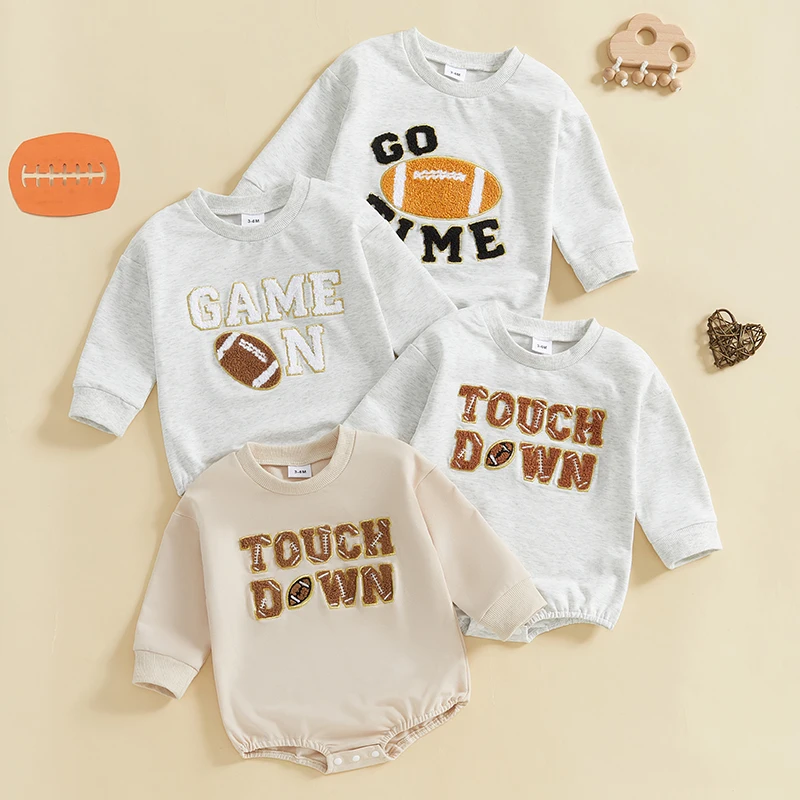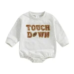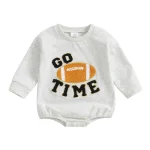 Let your little athlete show off their sporty side with this cute football-themed bubble jumpsuit! Designed for infants and toddlers, this unisex jumpsuit features embroidered football details, a comfortable O-neck, and full-length sleeves for all-day wear.
