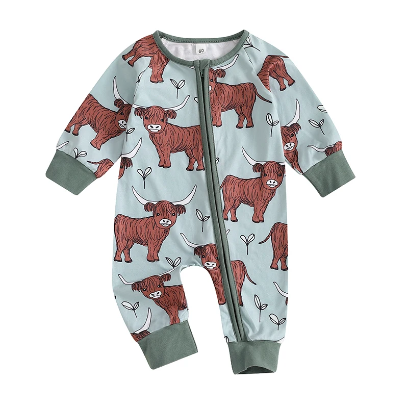 Wrap your little one in cozy charm with the Highland Cow Zip-Up Western Jumpsuit, perfect for infants and toddlers alike. This unisex jumpsuit features an adorable highland cow print that brings a rustic, playful vibe to everyday wear. Crafted with soft, breathable fabric, it keeps your child comfortable whether indoors or out.