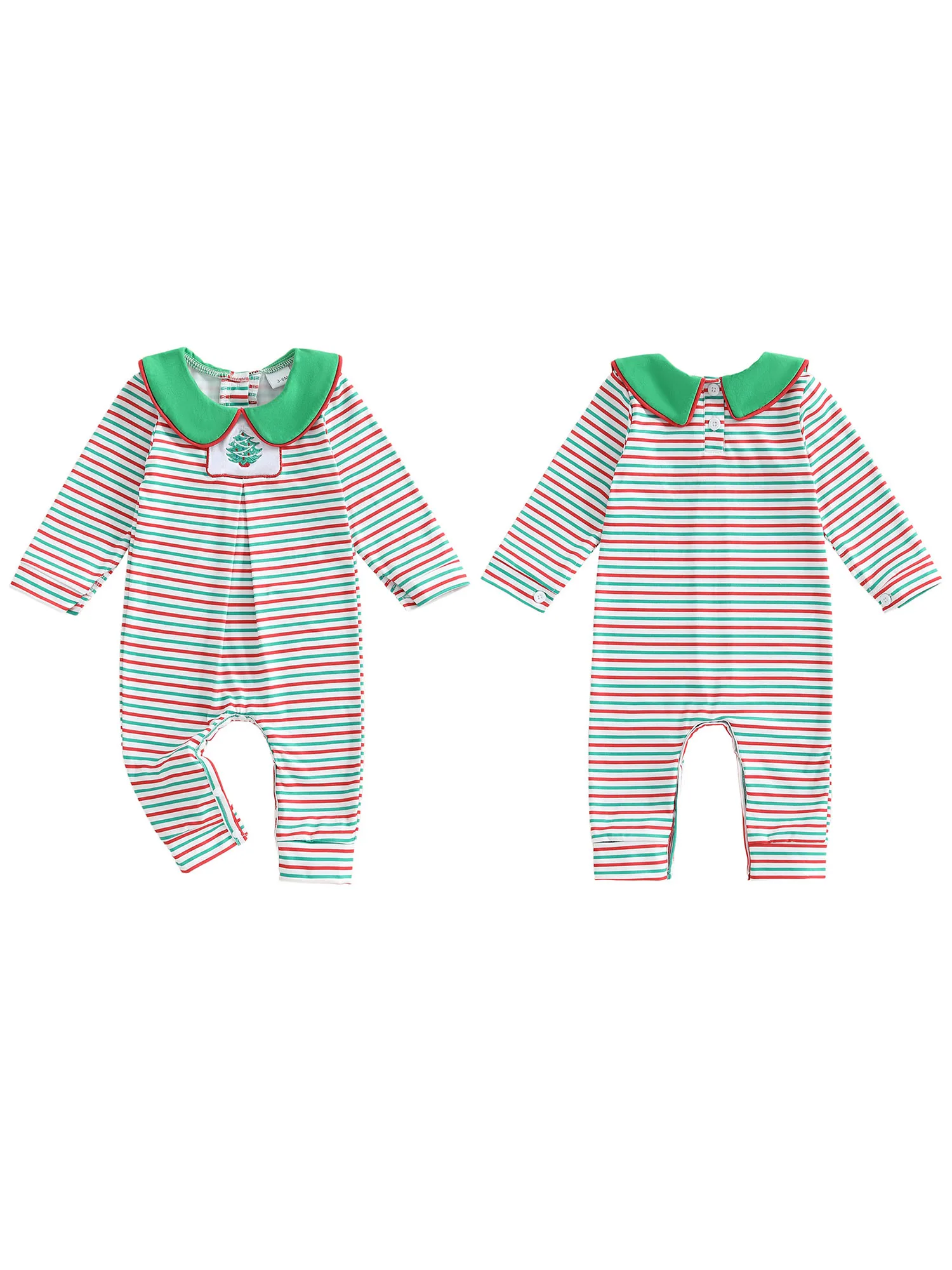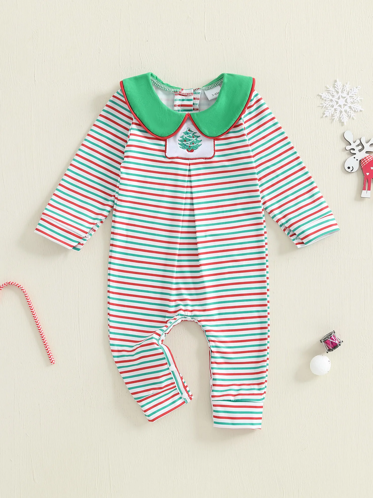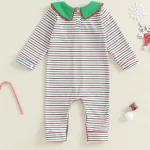 Baby Christmas Romper – Striped Long Sleeve Jumpsuit with Doll Collar ๐๐ถ