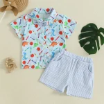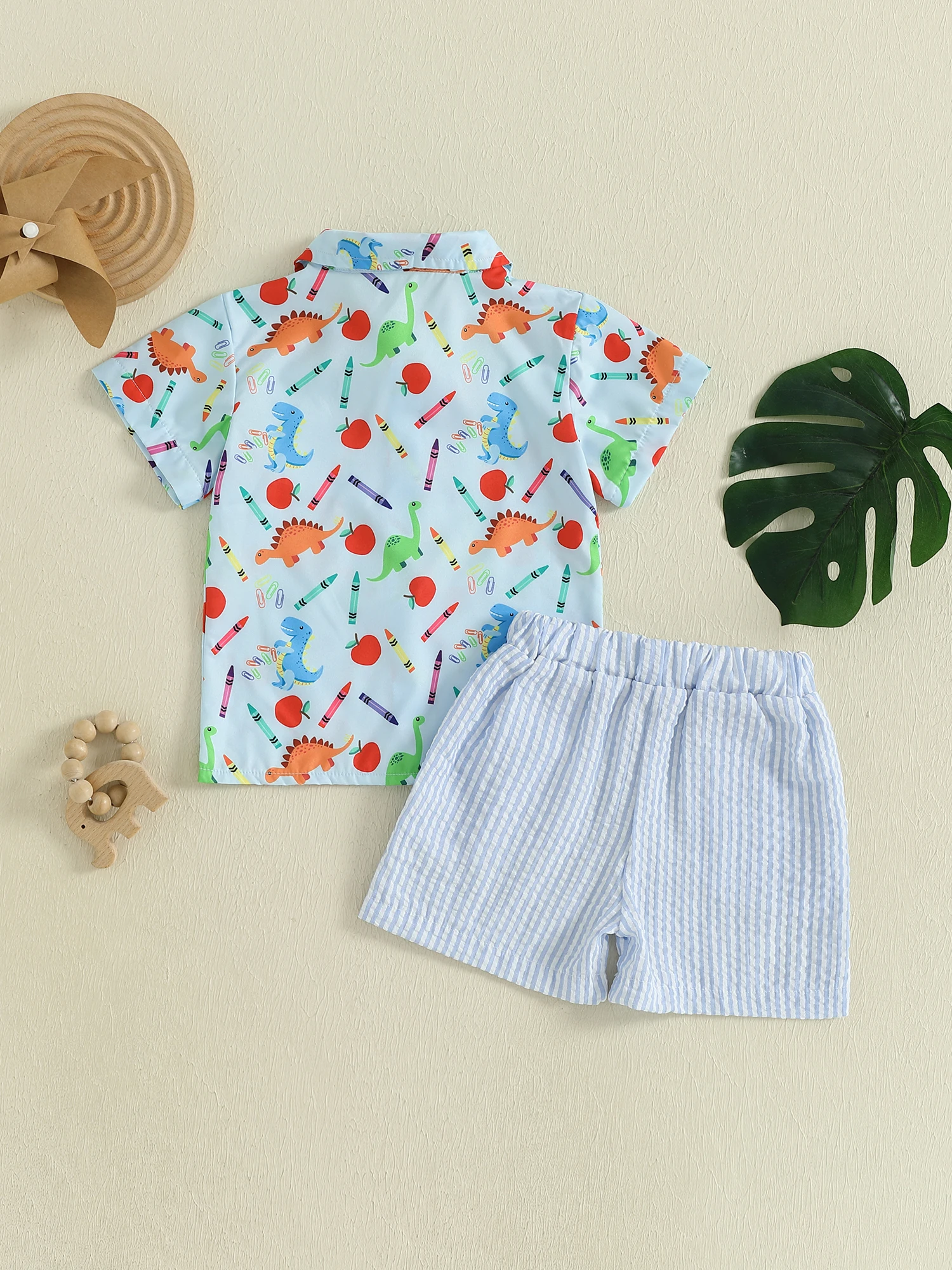 Baby Boys 2-Piece Summer Outfit – Short Sleeve Pencil Print Shirt + Shorts Set (Back to School Clothes)